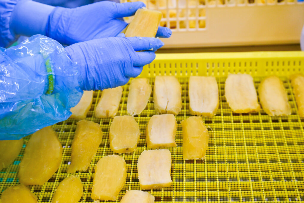 自社専用乾燥機(低温・遠赤外線・黒曜石・湿度管理・総合乾燥機)を使用し、しっとりきめ細かなほし芋に仕上がります。化学肥料・農薬を一切使用しない形で