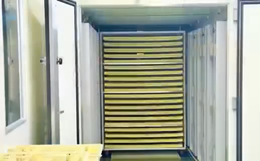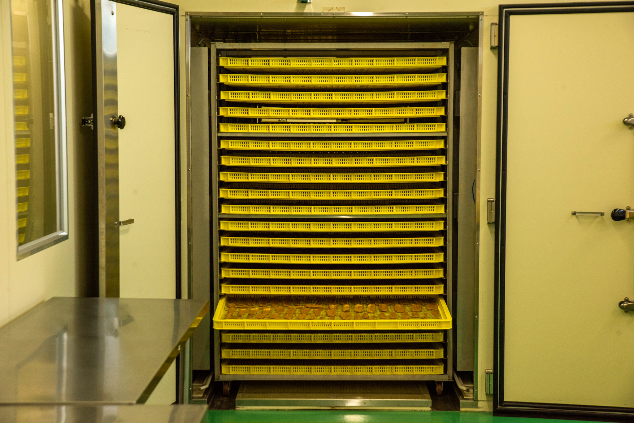 外気に左右されにくい自社乾燥機。季節を問わず同品質の仕上がりへ。
