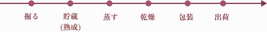 自社専用乾燥機(低温・遠赤外線・黒曜石・湿度管理・総合乾燥機)を使用し、しっとりきめ細かな、ほし芋に仕上がります。
